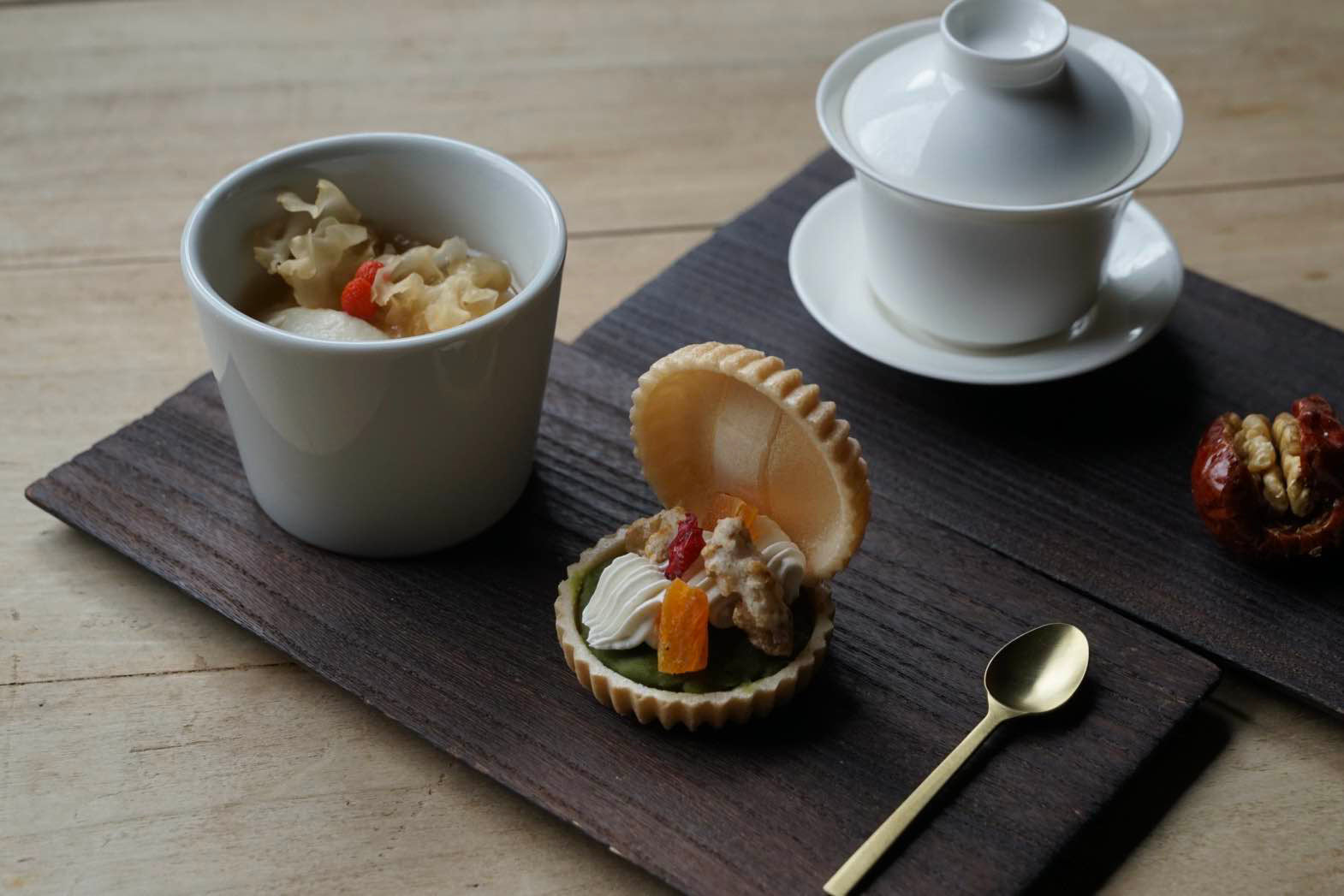 人は食べたものでつくられます。 食べることは、わたし という有機的な人間を生み出す、 ひとつの原理ではないかと我々は考えました。 そんな考えを基に、カフェでは薬膳の視点でメニューをご用意。 それらはひとりひとり違った処方箋として、 心身に気づきと安心を与え、おいしく整えてくれるはずです。 自分のからだは自分のものであるにも関わらず、 自覚的にいい状態を保つことは簡単ではありません。 古くから伝わる伝統の乾物や薬膳が、 現代の日常に、それとなく、 でもしっかりと寄り添うものであってほしい。 自分自身と対話しながら、 自分の心身に必要なものを自ら選べる楽しさと喜びをご提供します。