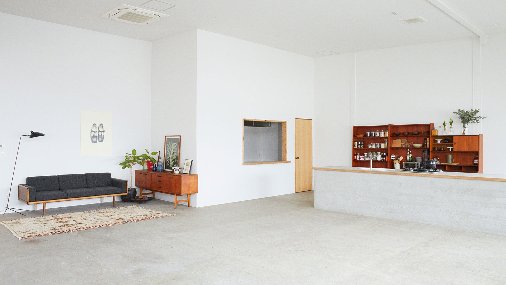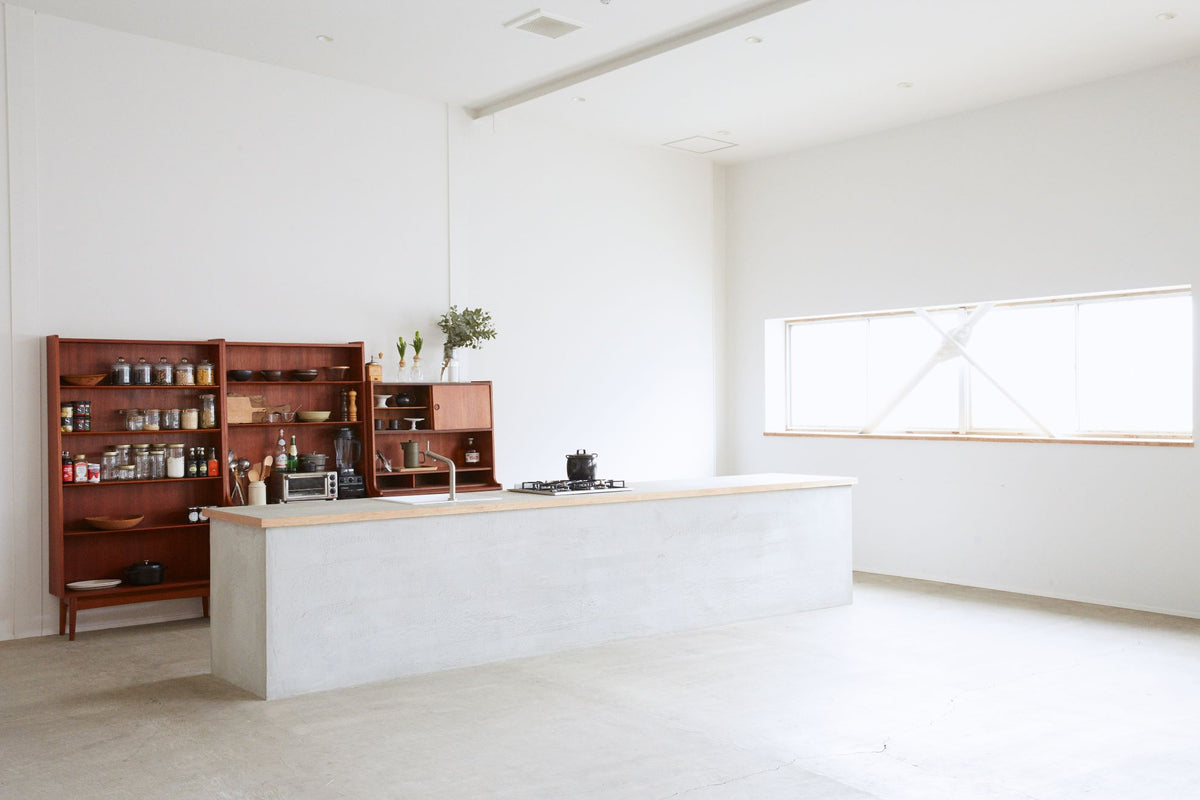 自然光が差し込むこのスタジオにはキッチンがあり